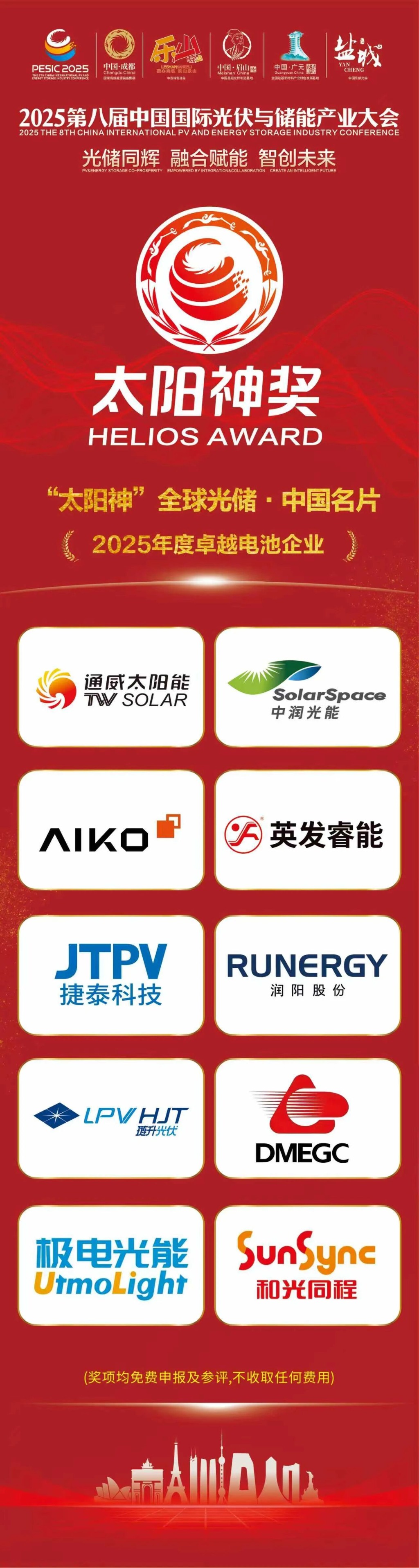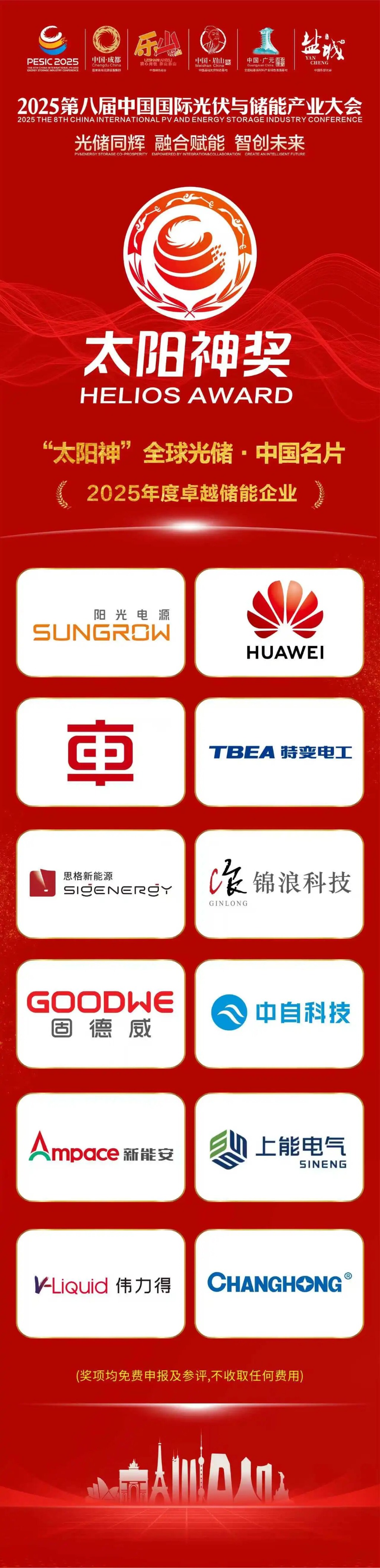 作为大会重磅环节之一,在11月18日举行的2025第八届中国国际光伏与储能产业大会颁奖盛典暨“眉山·中国晶硅光伏制造基地”之夜期间,“太阳神”全球光储·中国名片系列奖项隆重揭晓。